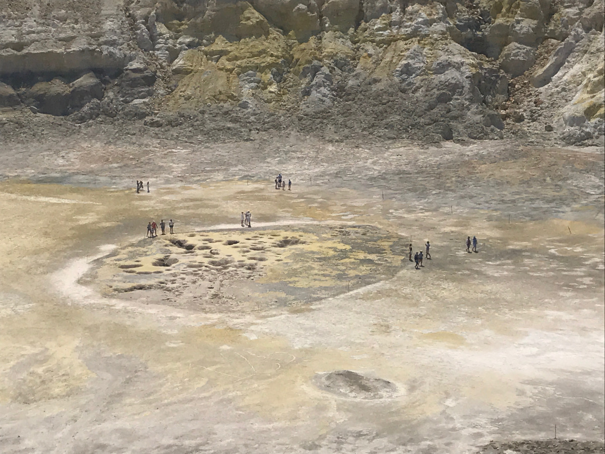 Nach dem Anlegen im Hafen des Hauptortes Mandraki ging es mit dem Bus durch das Gebirge zum Vulkankrater. Der Gestank nach Schwefel, der Dampf und die Hitze sind ein Naturschauspiel, welches man sicher nicht mehr so schnell vergisst. Die Erdkruste ist im inneren kleinen Krater nur noch ca. 4km dick, weshalb Menschen mit gesundheitlichen Problemen davon abgeraten wird, den kleinen Krater zu besuchen.